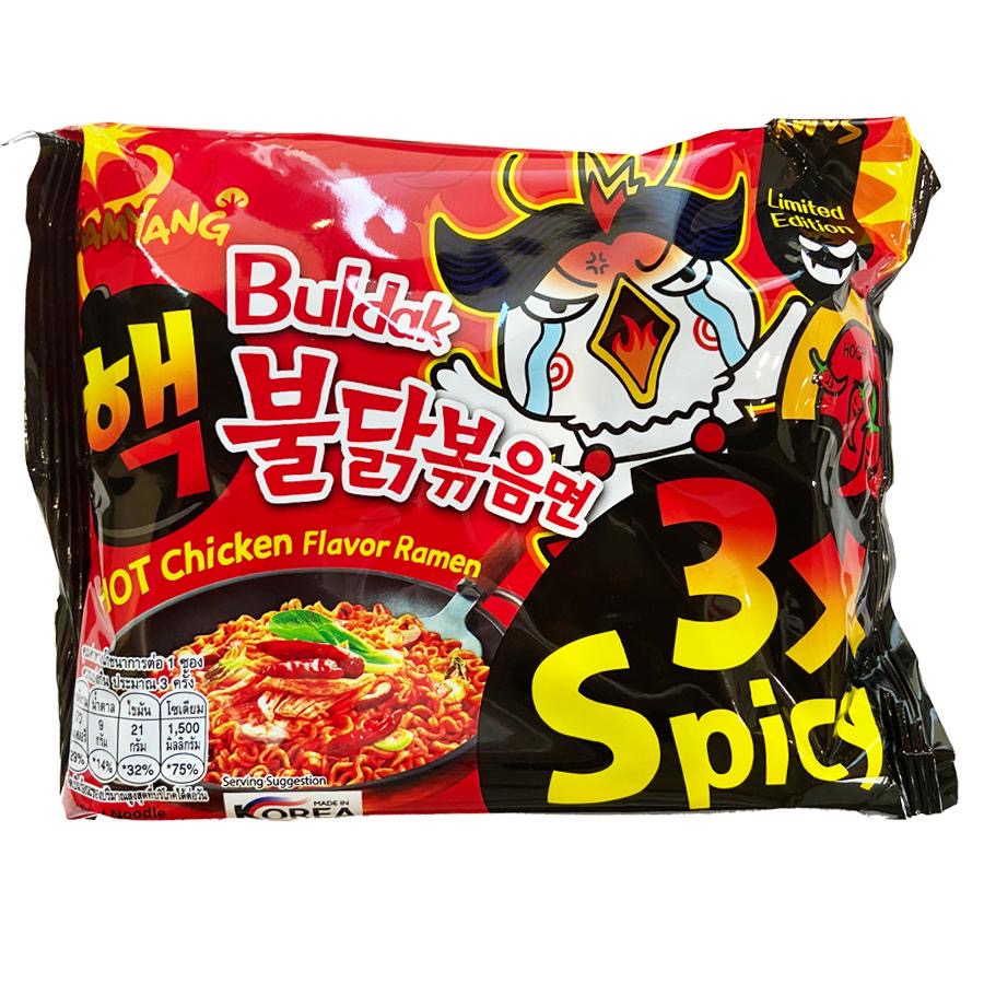 یکی از انواع نودل های سامیانگ که آن را به عنوان یکی از نودل های بسیار تند معرفی می کنند، نودل 3x می باشد. وزن این نودل همراه با بسته بندی 140 گرم است و وزن خالص آن 120 گرم می باشد. بسته بندی این نودل پلاستیکی است و به همین دلیل وزن بسته بندی آن بالا نمی باشد. این نودل رتبه تندترین نودل را در جهان کسب کرده است. طرفداران این نودل بسیار زیاد می باشد، چرا که افراد زیادی به غذاهای تند و آتشین علاقه دارند. در کشورهای شرقی و جنوب شرقی آسیا این غذا را به عنوان یکی از غذاهای اصلی معرفی می کنند. این نودل محصول کشور کره می باشد و دارای نشان حلال است. بنابراین هر یک از افرادی که می خواهند این نودل را خریداری کنند، خیالشان بابت کیفیت نودل آسوده است.
